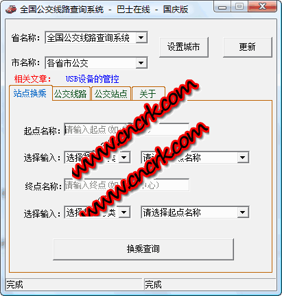 本系統(tǒng)為綠色無插件版,可放心使用! 全國公交線路查詢系統(tǒng) 目前已支持27個(gè)省,440個(gè)地級市。 功能:可以查詢公交換乘、公交線路、公交站點(diǎn)