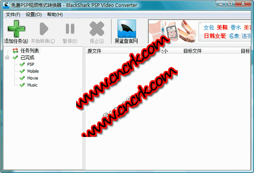 黑鯊魚(yú)PSP視頻格式轉(zhuǎn)換器 V2.2.0.2 簡(jiǎn)體中文綠色免費(fèi)版