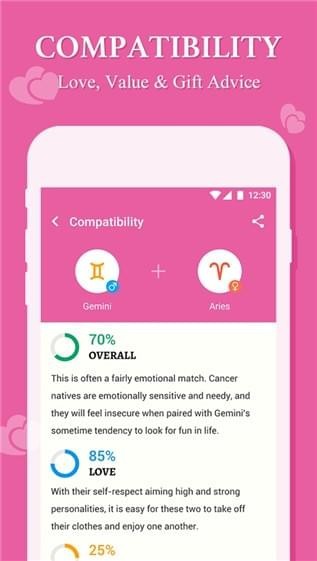 十二星座占星術(shù)app準(zhǔn)確的生肖預(yù)測(cè):選擇星座,并得到高度準(zhǔn)確的星座描述或星座符合你的一天!星座2018預(yù)測(cè)現(xiàn)在可用!個(gè)性化的占星術(shù)兼容性:嘗試占星術(shù)的魔法,并了解你的個(gè)人占星術(shù)星座!