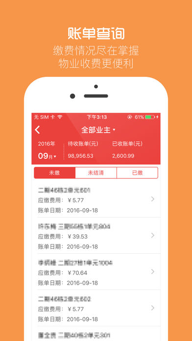 1、移動(dòng)、便捷的收費(fèi)工具——不受時(shí)間、地點(diǎn)限制,物業(yè)工作人員可以隨時(shí)隨地查詢、收取小區(qū)物業(yè)各項(xiàng)費(fèi)用;2、賬單查詢、收取——與PC端物業(yè)收費(fèi)系統(tǒng)同步,物業(yè)工作人員可以查詢小區(qū)最新繳費(fèi)、欠費(fèi)情況,根據(jù)房產(chǎn)查詢、催收物業(yè)費(fèi)用;
