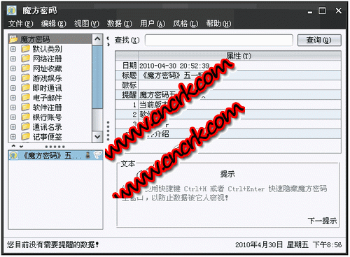 魔方密碼是一款開放源代碼的跨平臺密碼管理軟件,100%純Java語言開發(fā),其主要目標是在充分保障用戶數(shù)據(jù)安全的基礎上,做到同一數(shù)據(jù)能夠方 便的在多種操作平臺上使用。軟件采用目前國際上通用的標準商用加密算法保證您的數(shù)據(jù)機密性,支持用戶自定義數(shù)據(jù)、支持隨機密碼生成、支持基于云存儲的數(shù)據(jù) 備份與恢復、支持郵件檢測及記事提醒等功能。