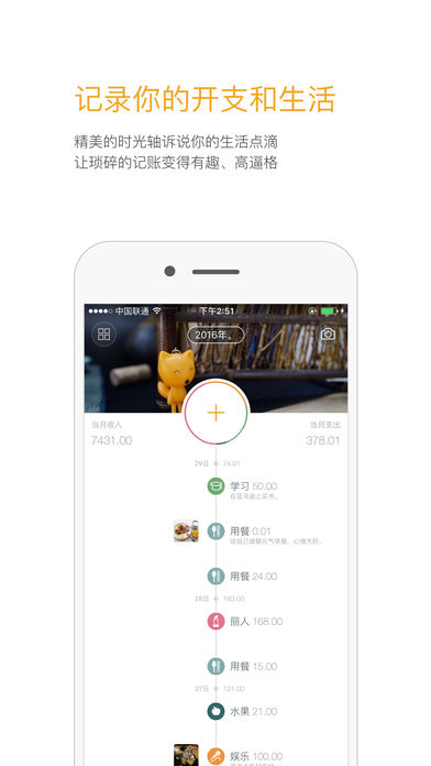 流暢動態(tài)效果,流水統(tǒng)計,精美的賬目分享