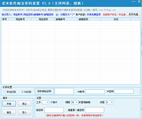 打開淘寶密碼重置工具導(dǎo)入需要重置密碼的賬號(hào)