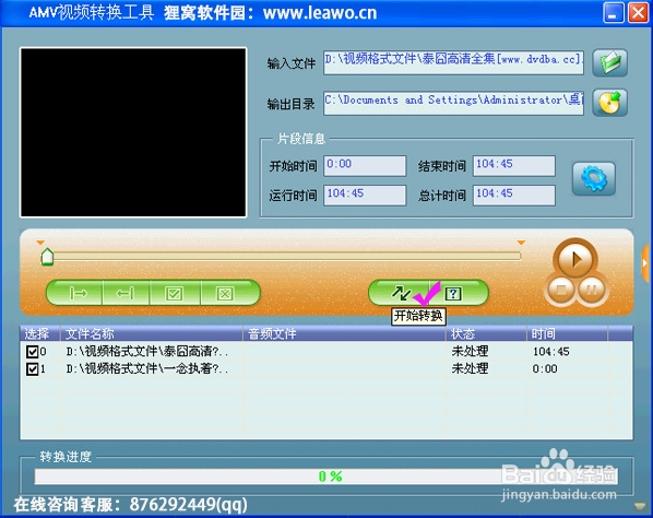 下面就開始把視頻轉(zhuǎn)換成amv格式啦。點擊“轉(zhuǎn)換”按鈕,視頻開始轉(zhuǎn)換啦。