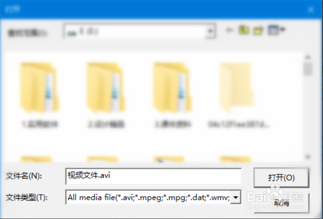 進入AMV界面,單擊輸入文件欄右側(cè)方單擊“文件夾”小圖標,彈出打開文件窗口,找到需要轉(zhuǎn)換的視頻后,選中,單擊“打開”: