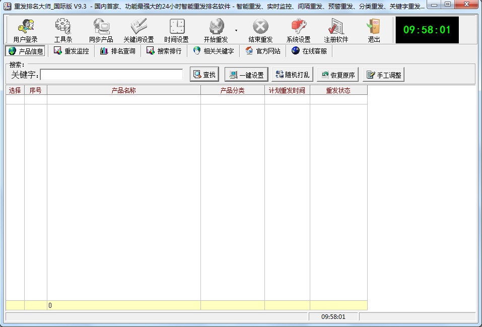 重發(fā)排名大師是一款功能最強(qiáng)大的24小時(shí)智能重發(fā)排名軟件,針對阿里巴巴誠信通會(huì)員、阿里英文站會(huì)員及慧聰網(wǎng)會(huì)員打造,包含智能重發(fā)、實(shí)時(shí)監(jiān)控、分類重發(fā)、關(guān)鍵字重發(fā)等功能。重發(fā)排名大師軟件管理您發(fā)布的產(chǎn)品信息,并根據(jù)排名規(guī)則,智能設(shè)定相應(yīng)的重發(fā)時(shí)間和間隔重發(fā)周期,使您的信息有好的搜索排名。所有重發(fā)發(fā)布工作由阿里重發(fā)軟件自動(dòng)完成,無需人工干預(yù),真正解放您的雙手,讓您可以更加專注于業(yè)務(wù)處理。科學(xué)、精確的發(fā)布計(jì)劃,大大地提升您的產(chǎn)品信息排名,為您的商品增加宣傳力度,增加您的詢盤量,最終實(shí)現(xiàn)交易量的增加。
