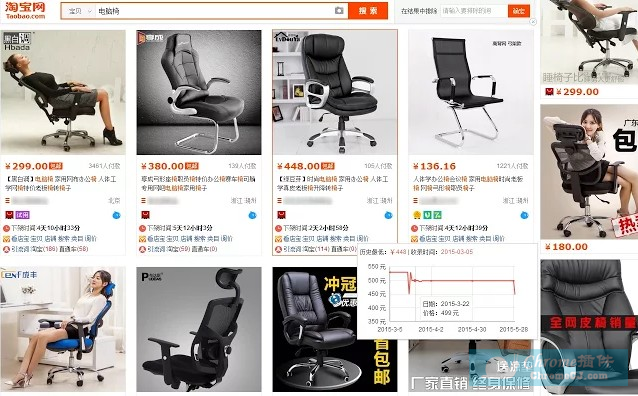 2.在淘寶或者天貓中搜索一個(gè)自己寶貝的相關(guān)商品列表的時(shí)候,用戶可以使用店偵探插件查看出當(dāng)前列表中其他競爭對手的詳細(xì)信息,如圖所示: