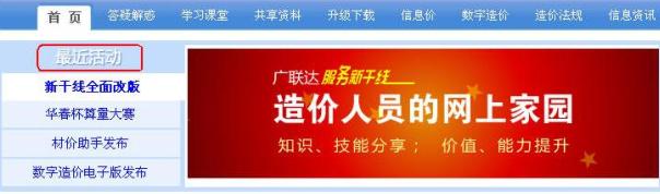 如圖,登錄新干線網(wǎng)站首頁,看到“最近活動(dòng)”欄目,該欄目匯集了服務(wù)新干線近期的各大型活動(dòng),如:新干線全面改版、華春杯算量大賽、材價(jià)助手發(fā)布等,鼠標(biāo)劃過活動(dòng)名稱時(shí)右側(cè)對(duì)應(yīng)活動(dòng)宣傳海報(bào)會(huì)隨之變動(dòng),點(diǎn)擊海報(bào)上的按鈕即可進(jìn)入相關(guān)內(nèi)容中。