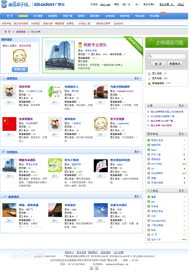 施工專家團(tuán)是答疑解惑里的一個(gè)單獨(dú)模塊,有自己獨(dú)立展示頁面,以團(tuán)隊(duì)作戰(zhàn)。用戶可以自己創(chuàng)建團(tuán)隊(duì),創(chuàng)建團(tuán)隊(duì)的人稱為團(tuán)長(zhǎng),可以自己管理自己的團(tuán)隊(duì),邀請(qǐng)成員,管理成員:審批、移出、鼓勵(lì)、授予優(yōu)秀團(tuán)員、定期舉辦會(huì)議等。 用戶可以加入已建好的團(tuán)隊(duì),與其他用戶一起成長(zhǎng)。 施工專家團(tuán)是新干線為廣大施工用戶開辟的一塊自我展示的平臺(tái),如果您有很好的管理天賦,在這里可以發(fā)揮您的管理天賦,實(shí)現(xiàn)管理全國(guó)施工行業(yè)的人員。如果您有很好的技術(shù),在這里您可以快樂幫助他人,樹立自己的專家形象。如果您是加入工作不久的朋友,您可以在這里與高手共同學(xué)習(xí)。不論您想展現(xiàn)哪方面的才華,施工地帶都成就您的藍(lán)圖。