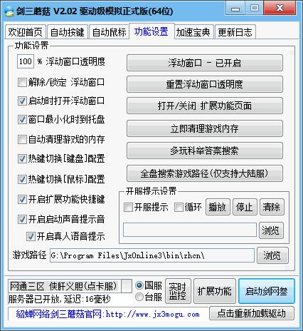 可以聽到按鍵提示音:請確認驅動是否加載正確,如果驅動加載失敗,請點擊重新加載驅動或關閉劍三蘑菇重新開啟.