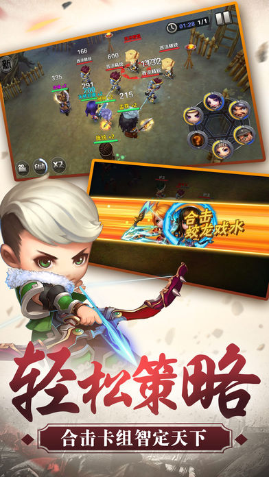 特色的將緣模式,不同的武將指尖碰撞產(chǎn)生華麗的合擊技能,絢麗的特效,超高的傷害引爆你的屏幕。