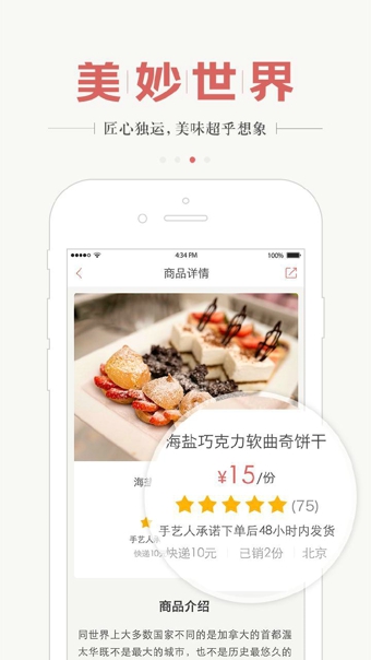 『美妙世界』是一個(gè)售賣(mài)眾多私房美味的電商平臺(tái),這里有全國(guó)眾多用心且不妥協(xié)的手藝人精心制作。英國(guó)大使館聚會(huì)常吃的德州奶油派,高級(jí)營(yíng)養(yǎng)師定制的瘦身餐,新疆純天然葵花蜂蜜,堅(jiān)持砂鍋燒制的私房牛肉板筋,帶有濃濃麥香堅(jiān)果香的歐式面包,沿襲法國(guó)傳統(tǒng)工藝的純正奶酪,吃了忘不掉的秘制小龍蝦,正宗但你買(mǎi)得起的切糕,每一款都絕對(duì)安全、放心、美味。