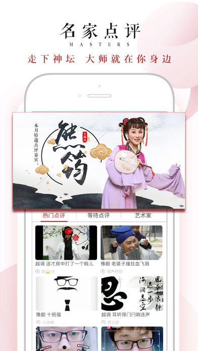 四、名 人 堂:更多大V名入駐,豫劇 李樹建、虎美玲;曲劇大咖劉艷麗;越劇大咖陶琪;黃梅戲大咖黃新德、吳亞玲等;戲迷可與藝術(shù)家隨時(shí)隨地溝通互動(dòng);