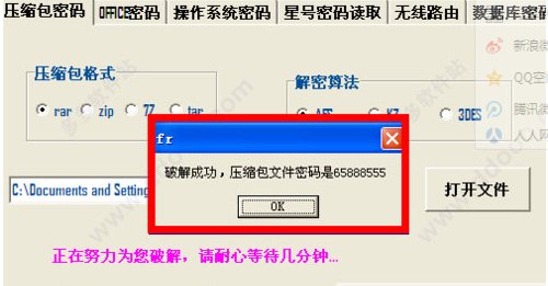 更換算法后,重新點(diǎn)擊“快速破解”即可,等待了2分鐘,看到了破解成功的提示就好了。