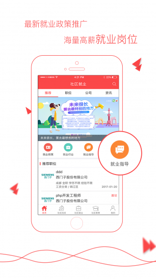 人民社區(qū)app是一個(gè)便捷實(shí)用社區(qū)服務(wù)平臺(tái),它不僅為用戶提供了各類(lèi)專(zhuān)業(yè)課程,還為社區(qū)居民推廣最新就業(yè)政策,提供大量就業(yè)崗位,從而提高社區(qū)居民素質(zhì)。