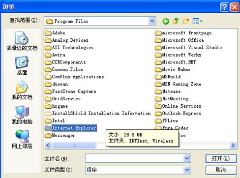 選擇C:\\Program Files\\Internet Explorer文件夾