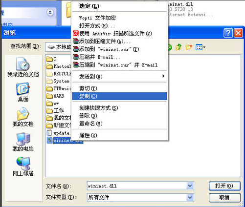 1、Windows 95/98/Me系統(tǒng),將wininet.dll復(fù)制到C:\Windows\System目錄下。