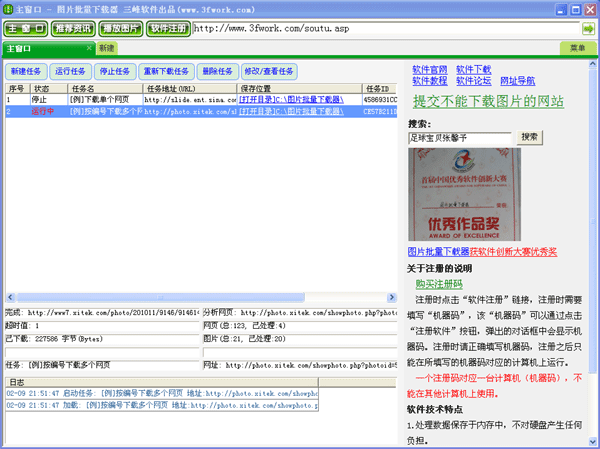 圖片批量下載器(Picture Downloader)是一個(gè)功能強(qiáng)大的網(wǎng)頁(yè)圖片批量下載工具。本軟件可以方便的將指定網(wǎng)頁(yè)的圖片批量下載下來(lái),并且可以分析出網(wǎng)頁(yè)中的鏈接網(wǎng)址信息,根據(jù)鏈接,不停的到相關(guān)的網(wǎng)頁(yè)下載圖片,把所有相關(guān)聯(lián)的網(wǎng)頁(yè)圖片都批量下載到你的計(jì)算機(jī)硬盤(pán)中。
