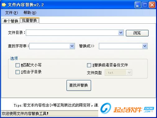 一、這是一款Windows操作系統下的簡單實用、美觀免費的文件內容替換軟件。所有功能集成在同一界面實現,易于操作和使用。而且它是一款綠色軟件,無需安裝,即可使用,小巧實用。二、軟件用途、功能: