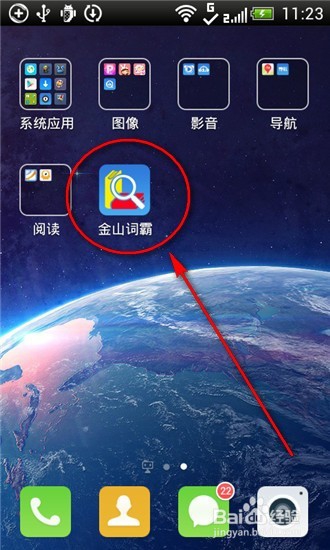 1.在手機(jī)上安裝【金山詞霸】手機(jī)版,點(diǎn)擊打開(kāi)程序。(金山詞霸在安卓和iOS均有移動(dòng)版本,根據(jù)自己的手機(jī)型號(hào)選擇安裝即可。)
