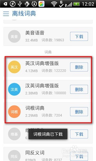 10.在【離線詞典】列表中,選擇要下載的詞典,下載完成后,就可以實(shí)現(xiàn)離線翻譯的功能。