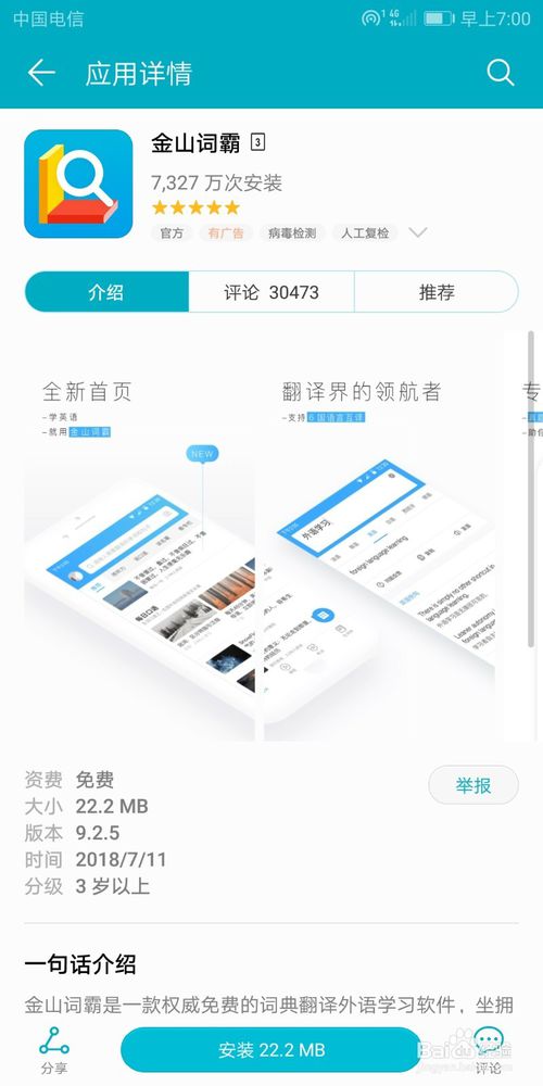 1.我們先到起點(diǎn)軟件園里面,搜索下載安裝金山詞霸,在應(yīng)用詳情里面,我們可以看看軟件的內(nèi)容。
