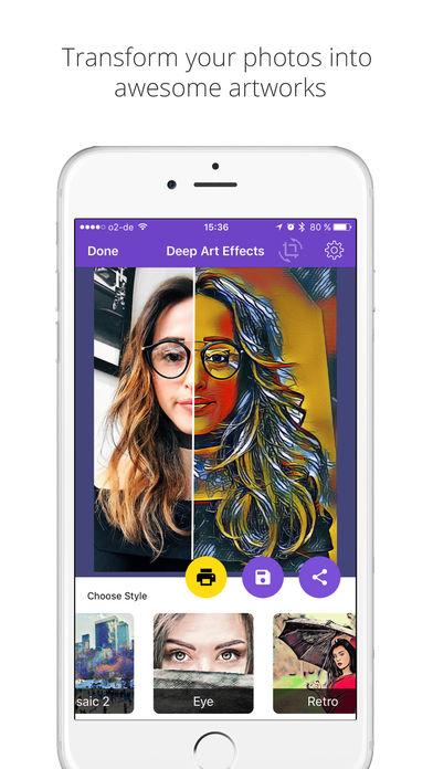 Deep Art Effects ios是一款深度藝術(shù)濾鏡應(yīng)用App,Deep Art支持多款藝術(shù)化的渲染效果,在Deep Art Effects這里用戶只需要將拍攝好的照片上傳到Deep Art應(yīng)用中,然后選擇你所喜歡的濾鏡效果直接一鍵生成即可。伴隨著prisma藝術(shù)相機(jī)的大熱,與prisma類似的app同樣是運(yùn)用神經(jīng)網(wǎng)絡(luò)的手機(jī)照片處理軟件也如雨后春筍般涌出,Deep Art Effects深度藝術(shù)濾鏡app 擁有不一樣的筆觸,多樣化的濾鏡,用戶可以使用Deep Art Effects將照片處理成油畫風(fēng)格圖片。