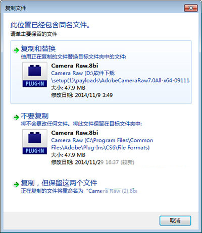 5、將改名后的文件復(fù)制到C:\ProgramFiles\Common Files\Adobe\Plug-Ins\CS5\File Formats目錄下,如果原來(lái)有文件的話,我們選擇覆蓋