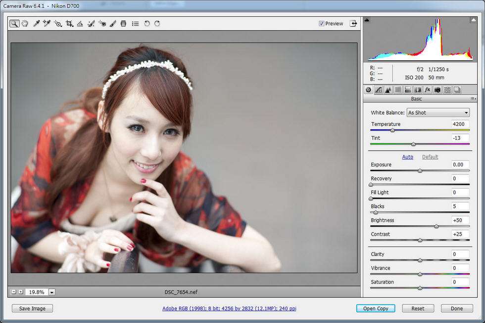 2、在 Camera Raw 中打開圖像文件。