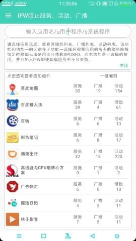 3、IFW禁用防火墻,可以單獨(dú)禁用服務(wù)、廣播、活動(dòng)三種組件(類(lèi)似寫(xiě)輪眼)該功能需要ROOT。