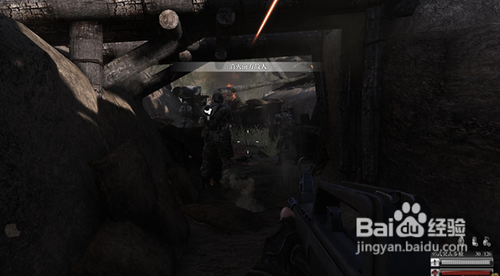 接著跟著路標(biāo)一路殺敵到達壕溝里,這里比較簡單,不要猛沖即可,慢慢推進,打完敵人不要急著前進,看你隊友是否前進,如果隊友不前進,說明前方掩體還有敵人躲著等著在背后陰你,所以在壕溝里記得一條,打完敵人,讓隊友先走。