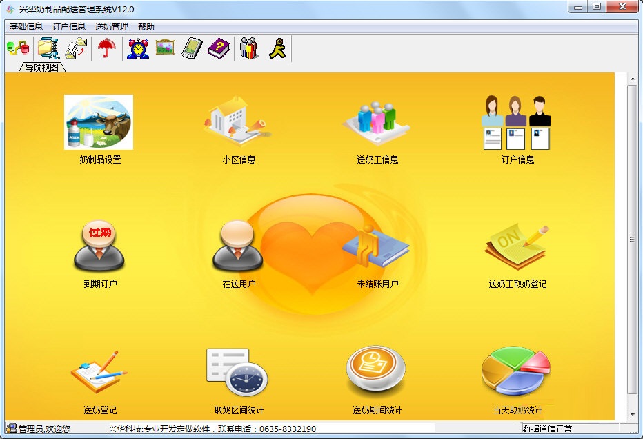 一、基礎信息(牛奶品種、區(qū)段信息、送奶工信息)、二、訂戶資料(訂戶資料、到期用戶、在送用戶、未結帳用戶)、