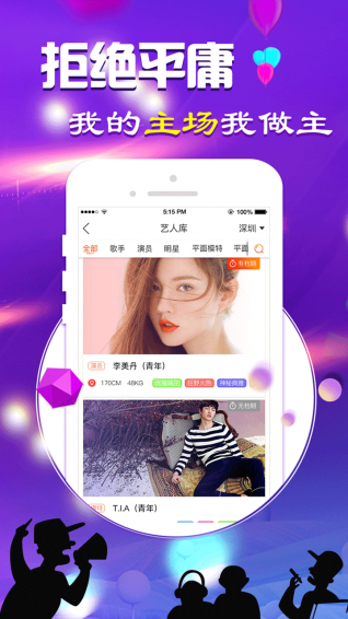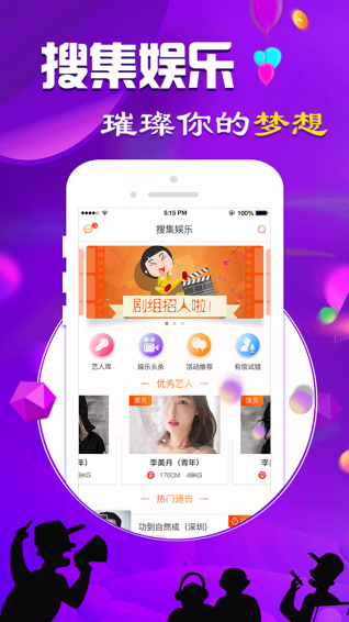 匯聚國(guó)內(nèi)外影視舞蹈演員,歌手、模特、主持主播等娛樂(lè)行業(yè)主流藝人群體、全面展示藝人信息。為影視機(jī)構(gòu)、藝人需求方提供便捷的找明星、找演員、找歌手、找網(wǎng)紅、找模特渠道和便捷的簽約合作模式。