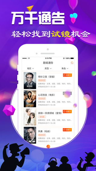 1.【劇組通告】劇組組訊中院線電影、電視劇、網(wǎng)劇、網(wǎng)綜、廣告、模特、歌手等通告一應(yīng)俱全。2.【活動(dòng)推薦】官方強(qiáng)力推薦活動(dòng),更多精彩等你來(lái)。