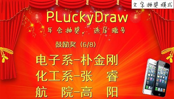 適用場(chǎng)合:適用于年會(huì)抽獎(jiǎng)、晚會(huì)抽獎(jiǎng)等場(chǎng)合。抽獎(jiǎng)模式:支持文字抽獎(jiǎng)模式(如名字、手機(jī)號(hào)等)、圖片抽獎(jiǎng)模式(照片抽獎(jiǎng))。