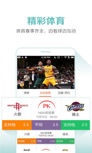 看體育賽事 : 除了cctv5在線直播,還有更多選擇——cctv5+、四海釣魚、勁爆體育、天元圍棋、足球等各種體育直播頻道齊全;NBA、中超、英超、亞冠、CBA、歐冠、西甲、意甲、德甲、法甲、奧運會、歐洲杯、美洲杯、世界杯預選賽、大師杯、各類世錦賽,你與賽場之間,只有一個播放器的距離。