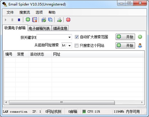 思達(dá)電子郵件搜集器是一款免費(fèi)綠色的電子郵件地址搜索和提取工具。該工具采用傻瓜式操作方式,打開軟件后,輸入關(guān)鍵字或者網(wǎng)址,點(diǎn)擊開始即可快速獲得大量的電子郵件地址。