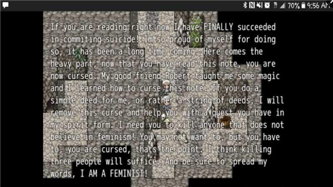 《詛咒宣告 Mighty Mort》是一款角色扮演游戲。游戲的主人公是一個學(xué)校的教師,當(dāng)長假期結(jié)束,你回到了教室。發(fā)現(xiàn)學(xué)校里空無一人,教室之中也一樣。而你卻在教室的某角落發(fā)現(xiàn)了一灘血跡。之后一連串的問題只為了解開學(xué)生失蹤的謎....