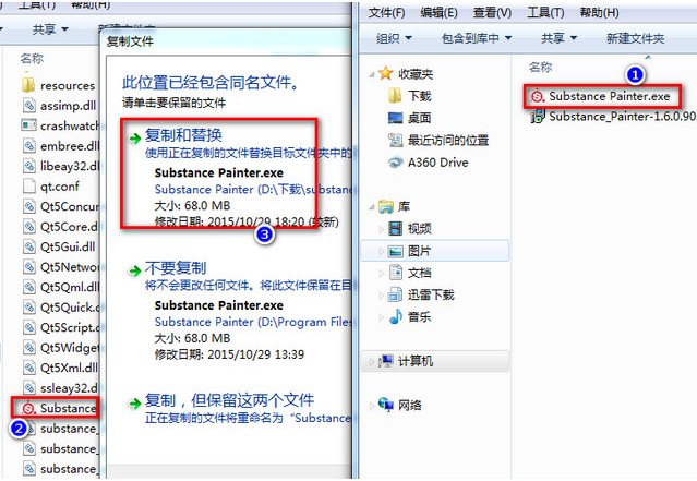 5、將解壓文件中的“Substance Painter.exe”破解程序復(fù)制到安裝目錄下替換(默認(rèn)的目錄為:“C:\Program Files\Allegorithmic\Substance Painter”)。