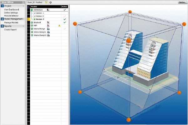 Vico Office是一款專業(yè)強大的BIM建筑設(shè)計軟件。軟件基于三維和四維BIM模型調(diào)度和5D估算模型,主要功能包括三維建模、沖突檢測、多模式管理、變更管理、模型派生塊圖等,支持CAD-Duct, IFC、SketchUp、DWG等文件格式導(dǎo)入,提供了綜合施工管理解決方案。【軟件功能】
