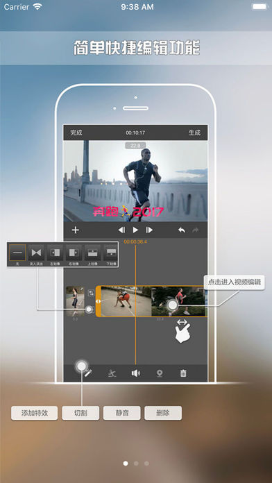 專業(yè)級視頻剪輯:提供視頻拍攝、手機(jī)視頻的直接剪輯,支持幀精確的片段Trim修葺、過渡轉(zhuǎn)場,應(yīng)用內(nèi)預(yù)制了數(shù)十種免費(fèi)的實(shí)用風(fēng)格特效與轉(zhuǎn)場動畫。強(qiáng)大的音頻制作:提供獨(dú)立的音頻編輯軌道,應(yīng)用內(nèi)預(yù)制了十余種主題背景音樂,支持導(dǎo)入移動平臺上的本地音頻文件,支持配音功能,音頻片段可自由移動、編輯調(diào)整。