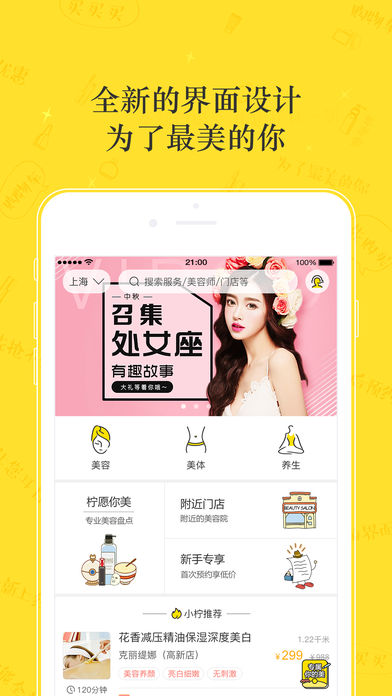 美檸——輕松到店美容優(yōu)質(zhì)平臺(tái)美檸是一家提供到店美容服務(wù)的互聯(lián)網(wǎng)平臺(tái),專為美容用戶發(fā)掘輕松舒適體驗(yàn)的美容門店,擁有多樣的美容項(xiàng)目,各有所長(zhǎng)的美容師供您自由選擇。