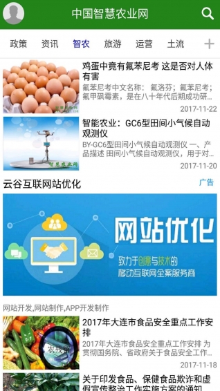 中國智慧農(nóng)業(yè)網(wǎng)app是根據(jù)國務(wù)院關(guān)于發(fā)展“三農(nóng)”產(chǎn)業(yè)的相關(guān)意見及各部委的政策指導(dǎo)下而建立的農(nóng)業(yè)軟件應(yīng)用。本軟件應(yīng)用在宣傳國家涉農(nóng)政策,傳播農(nóng)業(yè)新技術(shù)、農(nóng)業(yè)新聞發(fā)布,促進農(nóng)產(chǎn)品流通,提高農(nóng)業(yè)經(jīng)營者素質(zhì),促進農(nóng)村兩個文明建設(shè)等方面發(fā)揮了積極的作用,產(chǎn)生了良好的社會經(jīng)濟效益。