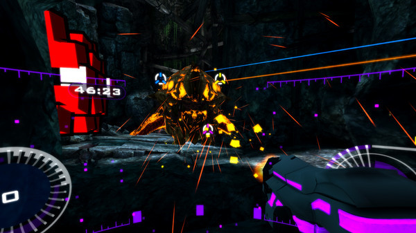 玩法進(jìn)入游戲主菜單時(shí)人物是可以自由移動(dòng)的,環(huán)顧四周,玩家可以看到游戲的名稱標(biāo)題、選項(xiàng)、成就、操作鍵位提示等信息,注意名稱標(biāo)題右側(cè)有個(gè)PLAY,走進(jìn)它,會(huì)出現(xiàn)關(guān)卡章節(jié)選項(xiàng),看左下角有個(gè)播放按鈕的圖標(biāo)點(diǎn)擊它即可正式開始游戲。進(jìn)入關(guān)卡之后,玩家首先會(huì)看到一個(gè)推車標(biāo)志,走進(jìn)它就會(huì)出現(xiàn)武器列表,選擇一樣中意的武器,開始戰(zhàn)斗吧。游戲中通過擊毀方塊來收集一些圖標(biāo),這些圖標(biāo)也代表金幣,如擊毀紅色方塊可以爆出一些黃色方形圖標(biāo),收集每個(gè)黃色方形圖標(biāo)可以獲得10金幣,擊毀白色方塊會(huì)爆出一些白色方形圖標(biāo),收集每個(gè)白色方形可以獲得1金幣。每一個(gè)關(guān)卡分為不同的階段,每個(gè)階段會(huì)解鎖一個(gè)機(jī)器人幫助玩家進(jìn)入當(dāng)前階段的戰(zhàn)斗。玩家利用所獲得金幣可以在商店中購(gòu)買增加DPS的技能,不同的技能所需金幣數(shù)量不同。