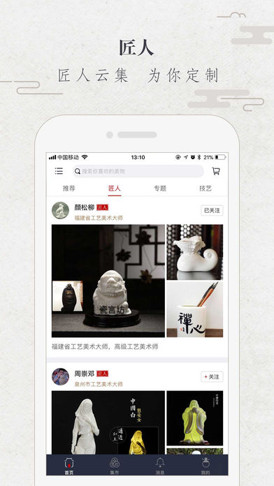 - 咨詢交流,直接與匠人對話,了解作品心得,結(jié)交優(yōu)秀匠人;