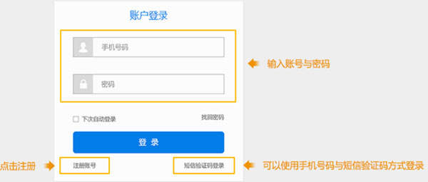 2.輸入賬戶名(手機(jī)號碼)及密碼登錄或切換至 “短信驗(yàn)證碼”方式登錄;