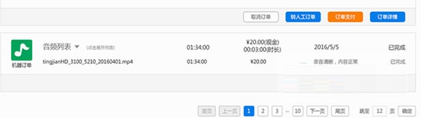 4.上傳音頻完成后,若為機(jī)器訂單,則直接跳轉(zhuǎn)至支付頁面;若為人工訂單,則訂單進(jìn)入“審核中”狀態(tài),審核完成后則可進(jìn)行訂單支付;