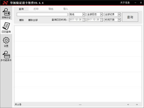 讀取身份證信息,導(dǎo)出證件信息、照片及登記表,可查詢讀取驗證日志,使用多功能讀卡功能。支持設(shè)置連續(xù)讀卡間隔及啟用身份證到期提示,設(shè)定操作快捷熱鍵。