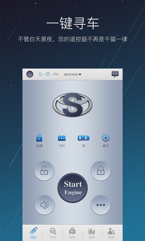 掌控:各種狀態(tài)(電瓶電量、防盜狀態(tài)、車門(mén)狀態(tài)、啟動(dòng)熄火等);