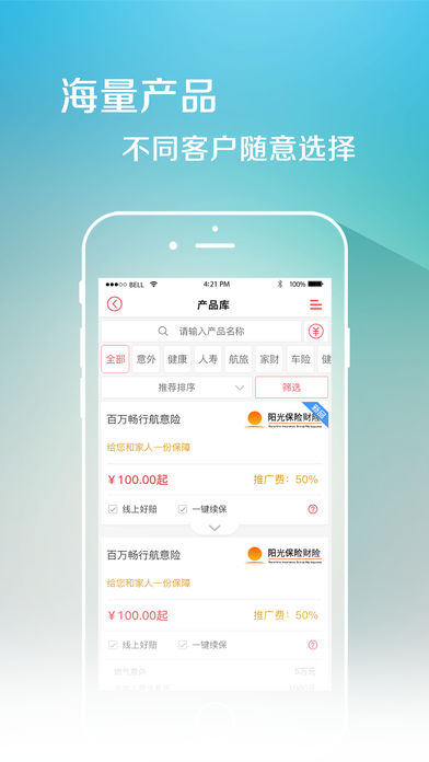 豐富的暢銷保險產(chǎn)品在線展示和交易,熱銷壽險產(chǎn)品的算費(fèi)工具免費(fèi)隨身攜帶。